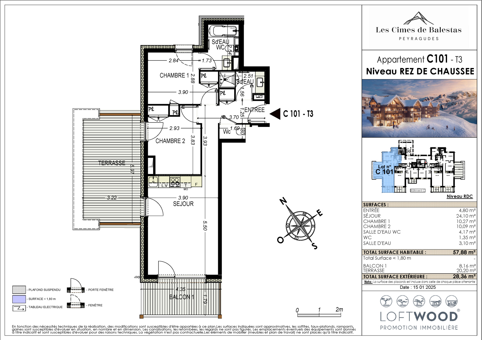 Cellier privatif, casier à ski et place de parking couverte privative.