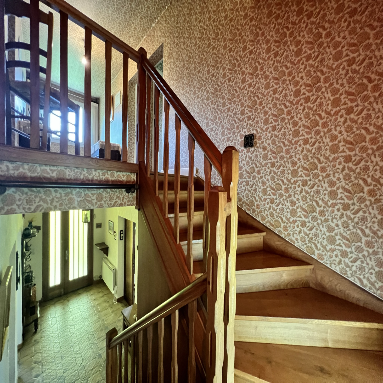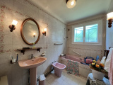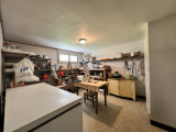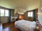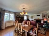 A l'étage, le hall dessert une cuisine aménagée et équipée, un séjour avec cheminée avec insert et récupérateur de chaleur, deux chambres, une salle de bain et wc.
